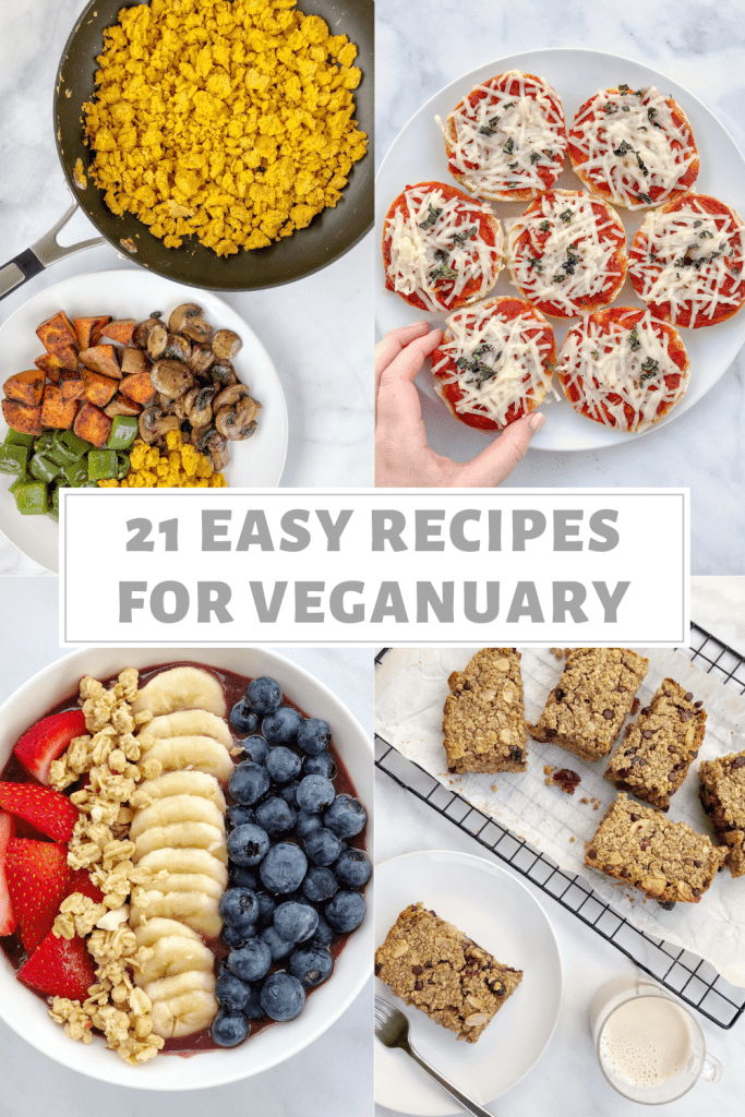 A collection of 21 Easy Recipes for Veganuary! If you're giving up meat, dairy, and eggs for January, I've got you covered for breakfast, lunch, dinner, and even snacks.