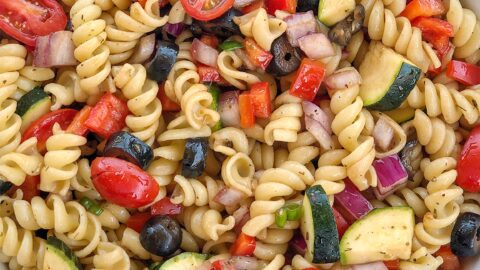 This easy veggie pasta salad is loaded with tomatoes, zucchini, bell pepper, red onion, black olives, and tossed with a zesty homemade balsamic dressing. Pasta salads aren't just for summer! Add this vegan-friendly easy veggie pasta salad into your back-to-school all fall lunch routine. It comes together with whatever fresh and seasonal ingredients you have … Continue reading Easy Veggie Pasta Salad