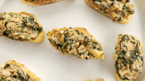 Spinach Artichoke Bruschetta are adorable individual bites, perfect for the holidays, happy hour, game day, or any occasion requiring finger food! Take your vegan spinach artichoke dip up a notch by spreading it on top of toasted baguette slices! This easy appetizer recipe is dairy-free and perfect for vegans and vegetarians. To make gluten-free, simply … Continue reading Spinach Artichoke Bruschetta