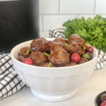 Once meatballs are cooked, transfer to the crockpot, stir to combine and enjoy!