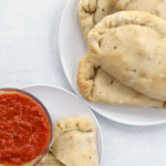 These easy homemade calzones are simple, delicious, and freezer-friendly! Load em up with your favorite pizza toppings like diced mushrooms, bell peppers, olives, dairy-free cheese, and sauce.