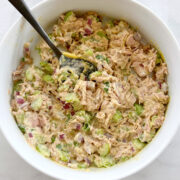 Prepared tuna salad can stay in the fridge, covered, for up to 3 days.